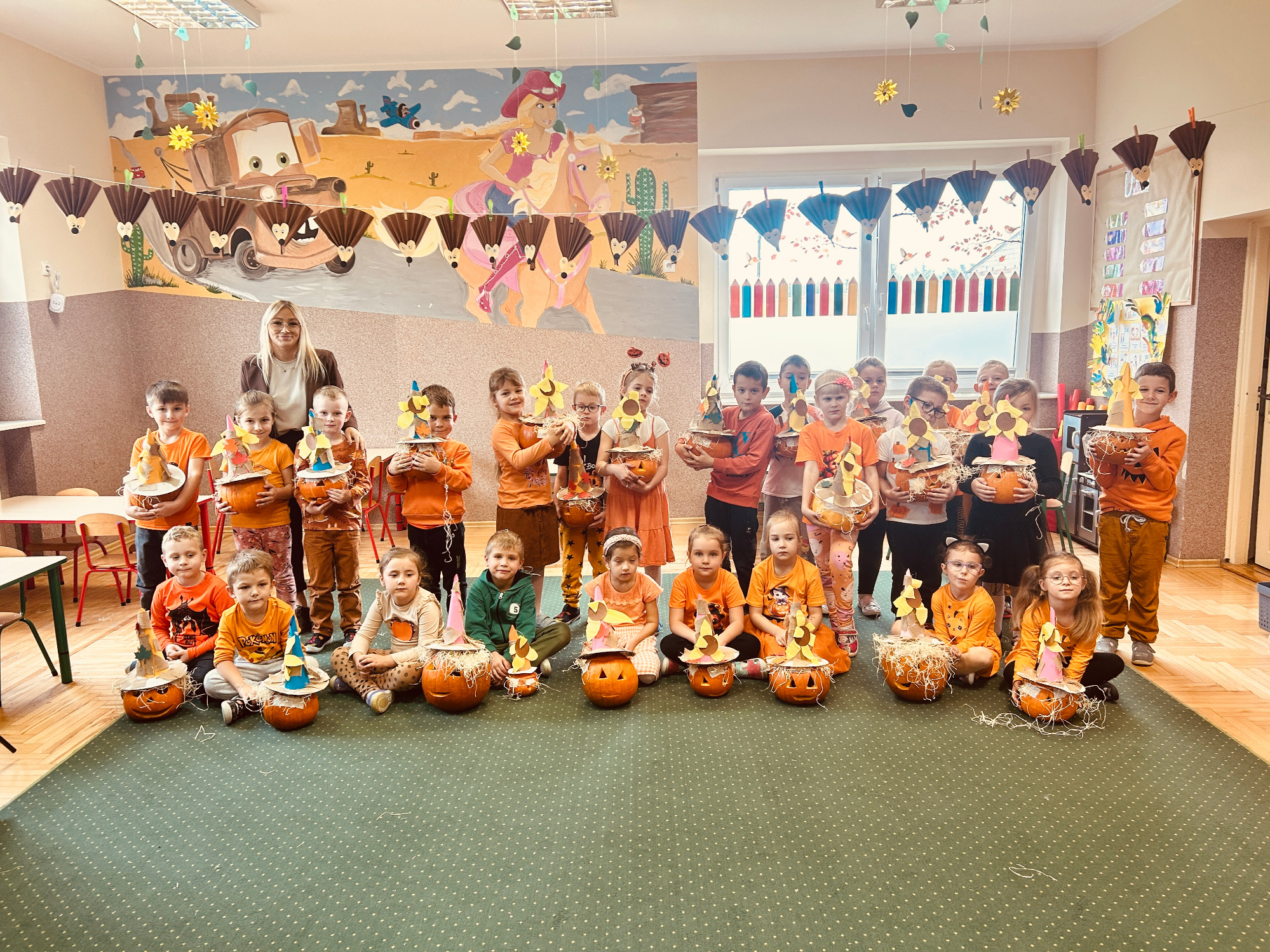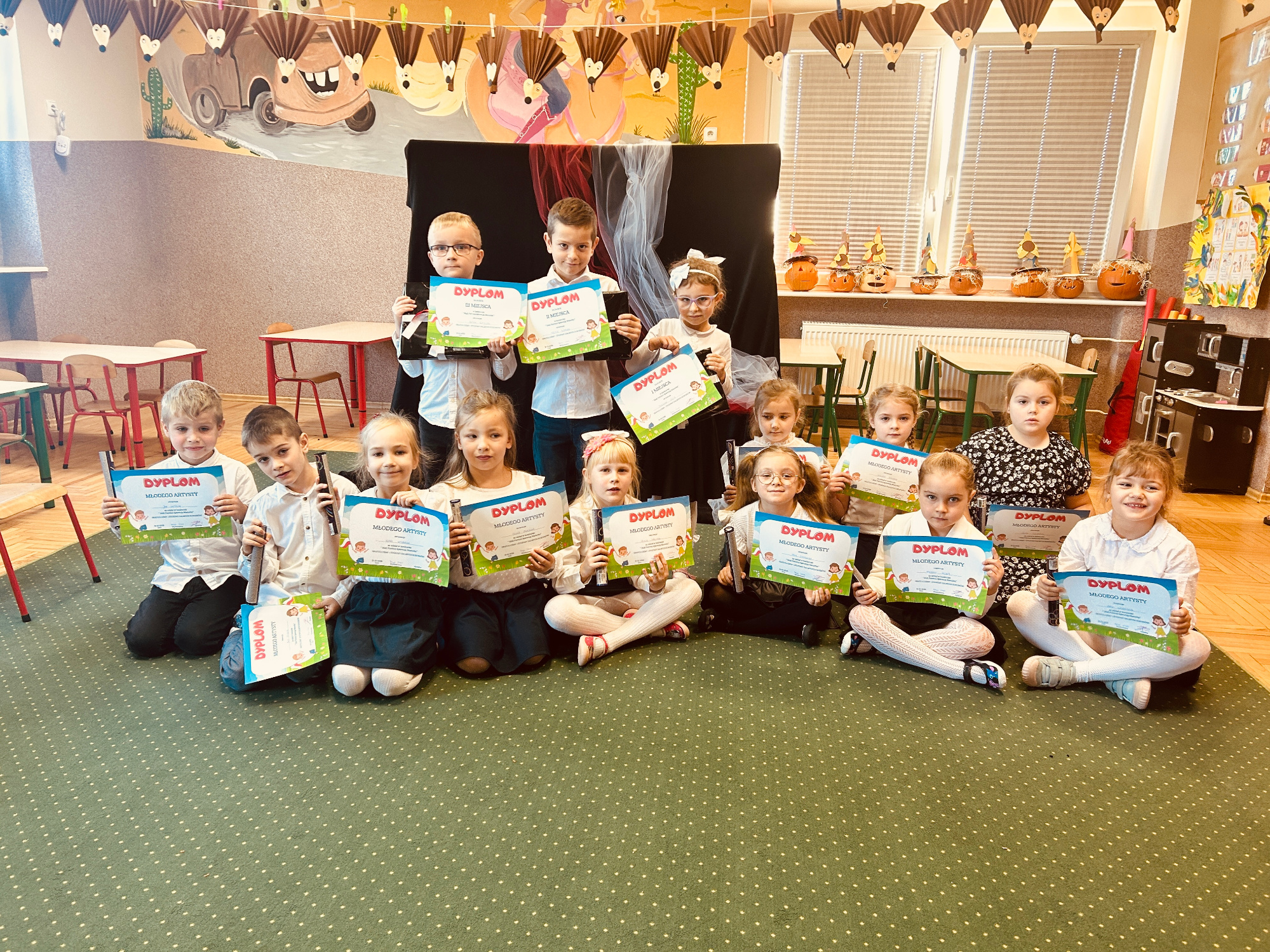 15 października przedszkolaki obchodziły Dzień Edukacji Narodowej. Dzieci przygotowały występ artystyczny, w którym śpiewały piosenki, tańczyły i składały życzenia nauczycielom oraz pracownikom przedszkola. Wydarzenie przebiegło w radosnej i uroczystej atmosferze, a dzieci cieszyły się możliwością wyrażenia wdzięczności dla swoich nauczycieli.