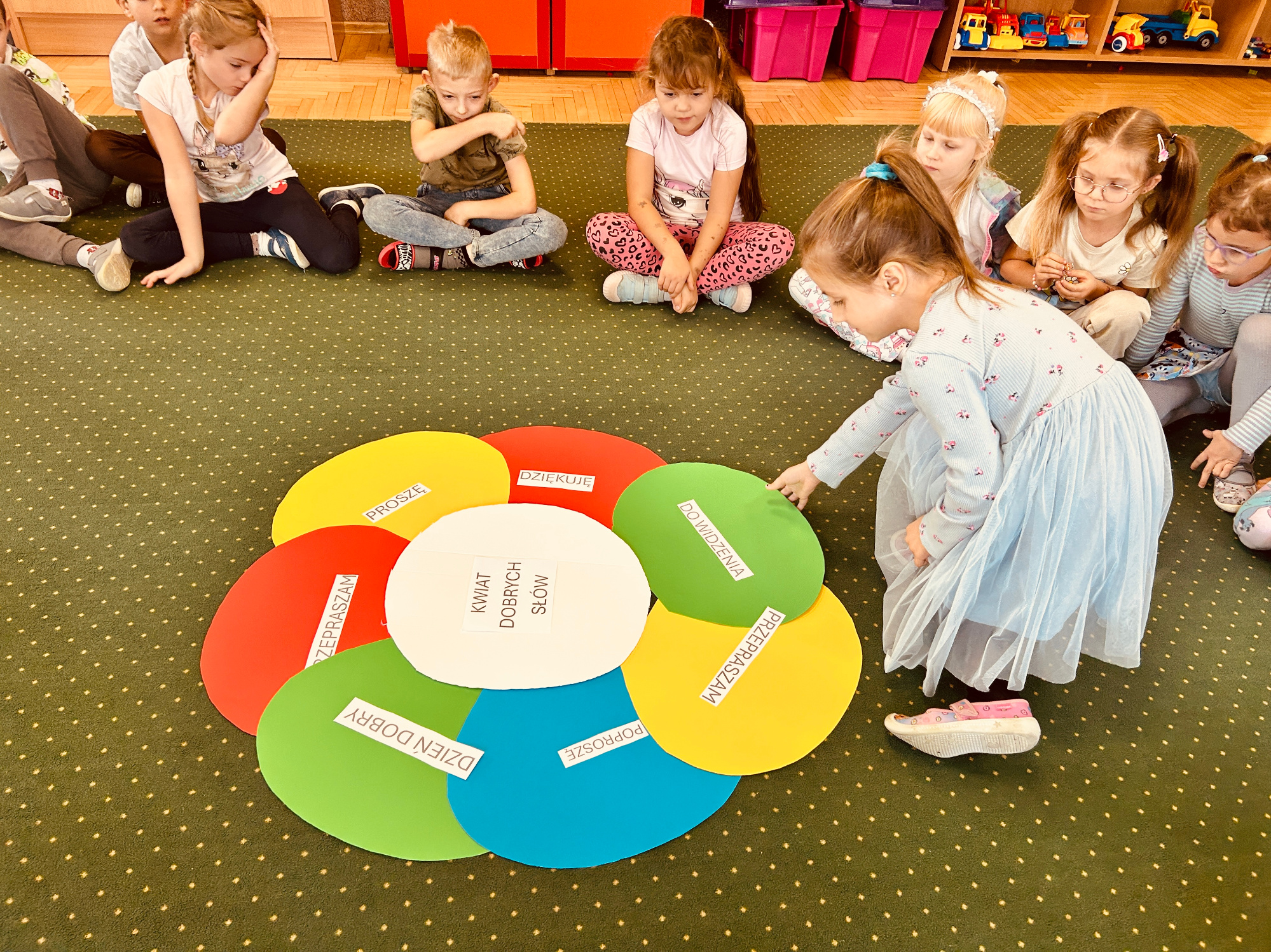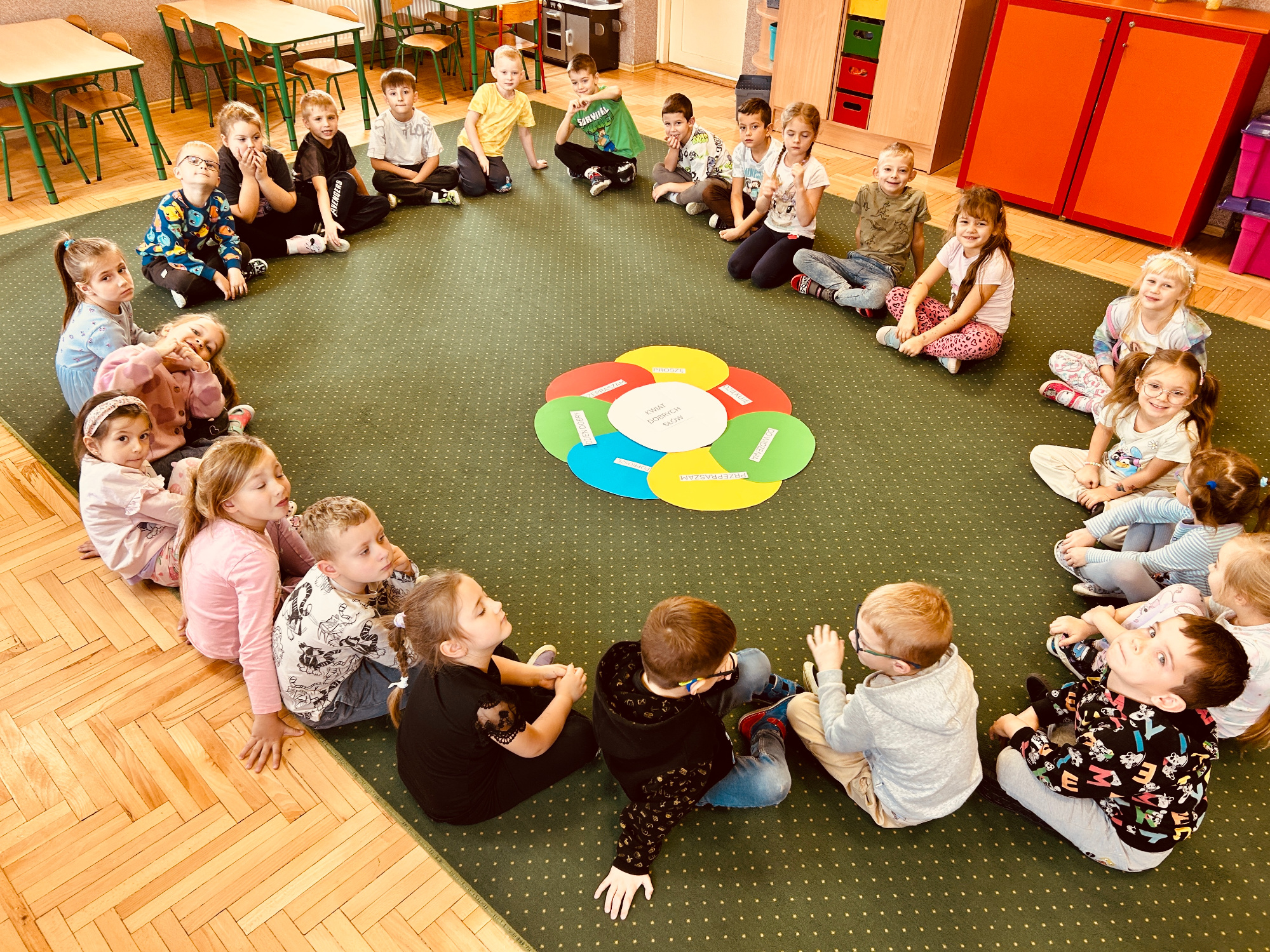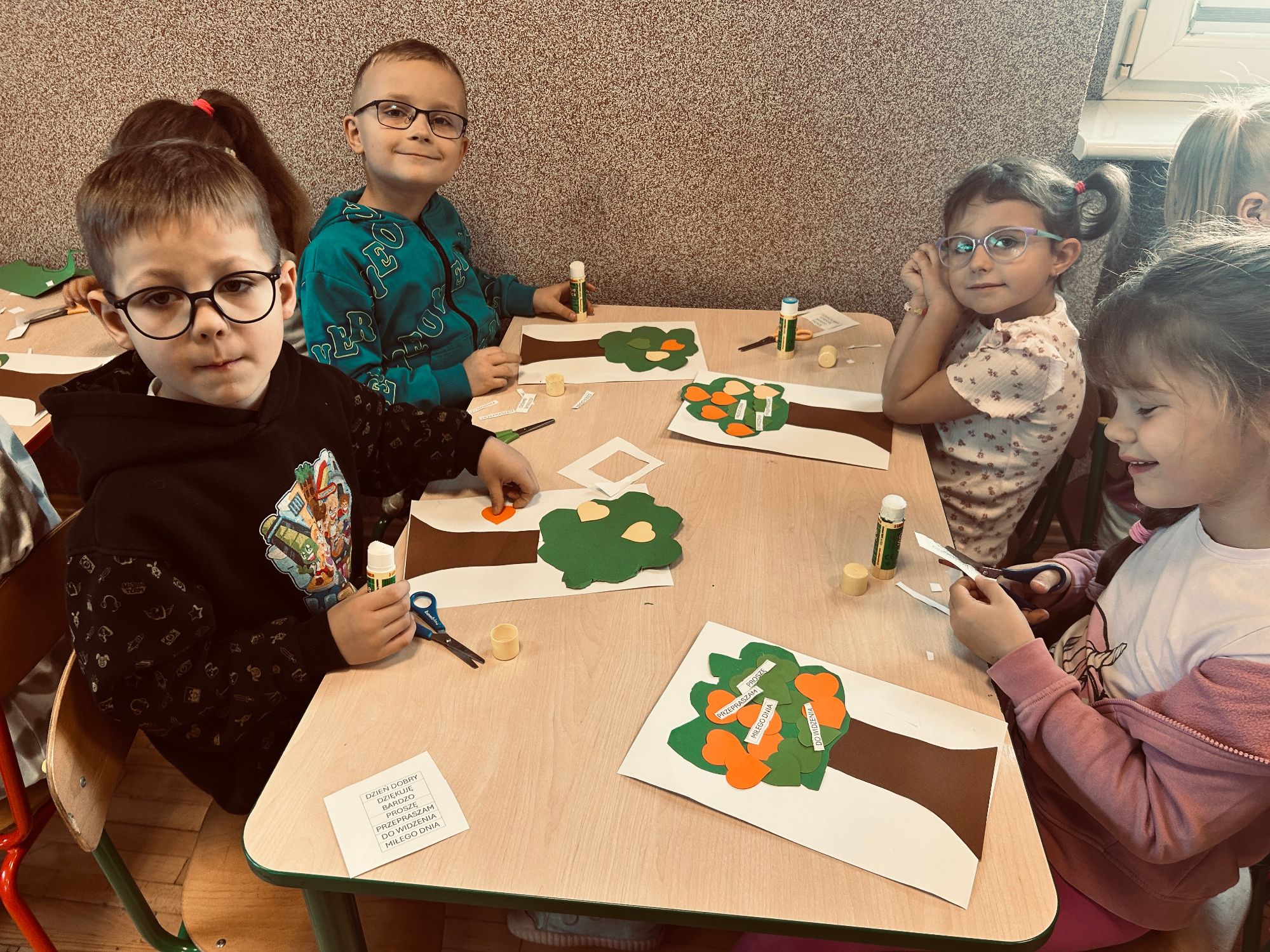 Podczas zajęć odbyły się różne zabawy i aktywności, które pomagały dzieciom lepiej zrozumieć znaczenie dobrych słów – m.in. zabawy integracyjne, tworzenie „łańcucha życzliwości”, odgrywanie scenek oraz wspólne tworzenie pozytywnych komunikatów. Dzieci z zaangażowaniem uczestniczyły w aktywnościach, dzieliły się uśmiechami i dobrymi słowami, ucząc się, że słowa naprawdę mają moc.