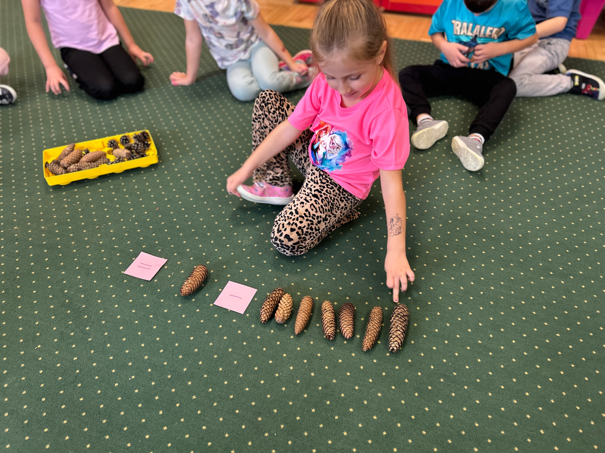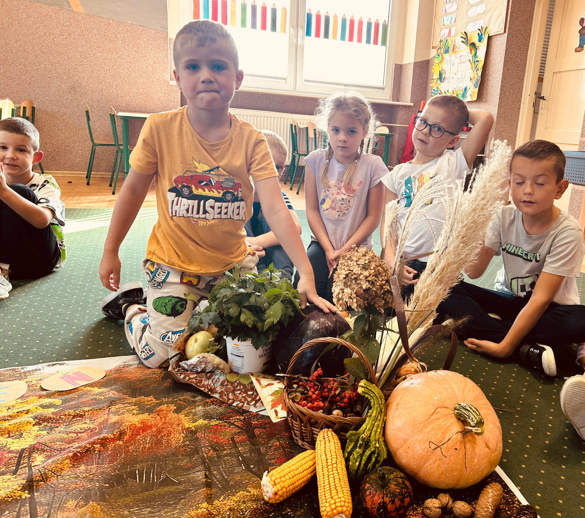 Jesień to bardzo kolorowa i inspirująca pora roku. Różnobarwne liście i inne skarby jesieni zachęcają Starszaków do aktywnego gromadzenia najładniejszych okazów oraz stanowią doskonałą bazę do obserwacji przyrodniczych i zabaw matematycznych. W czasie zajęć dzieci z grupy Kubusia Puchatka rozwijały umiejętność: rozpoznawania, nazywania, segregowania, liczenia, mierzenia, ważenia skarbów jesieni oraz uczyły się zgodnej współpracy w grupach.