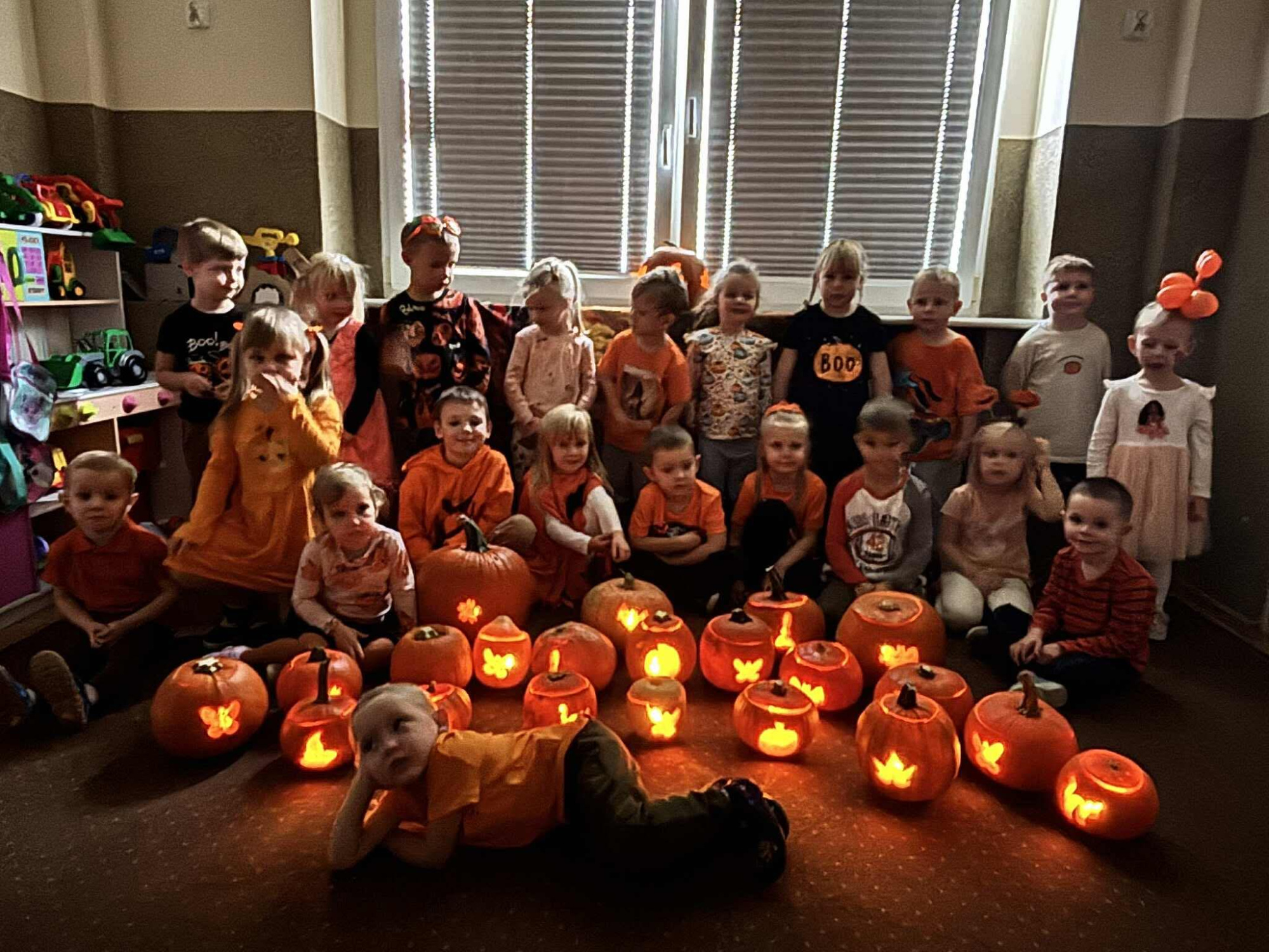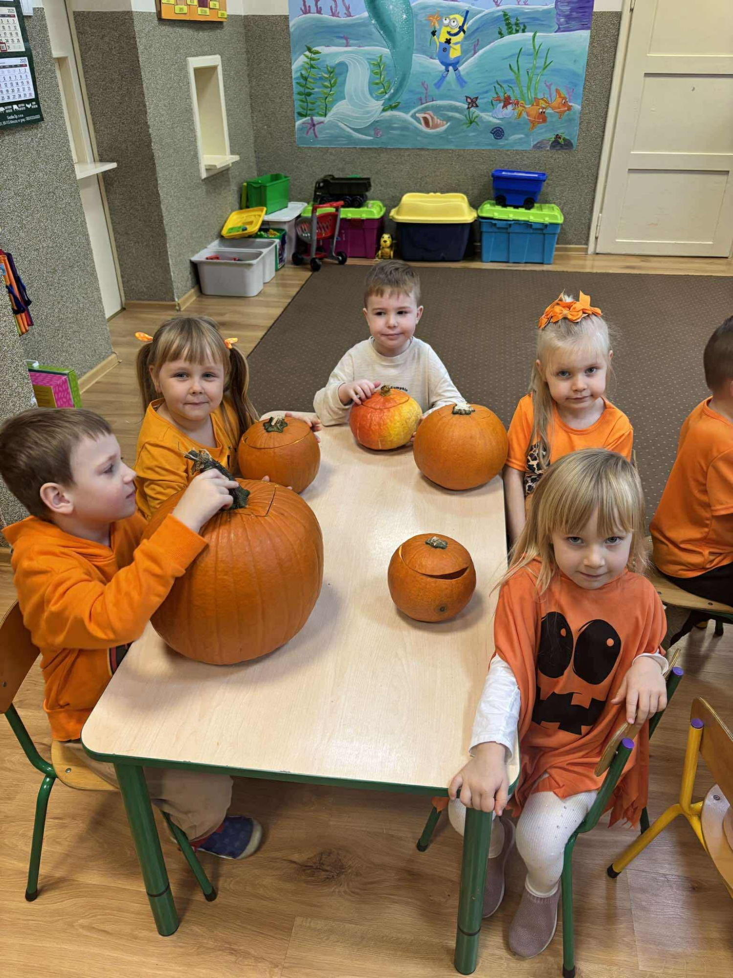 30 października dzieci obchodziły Dzień Dyni – wyjątkowe, jesienne święto pełne radości i kreatywnej zabawy. Tego dnia przedszkolaki przyszły ubrane w pomarańczowe barwy, a sale ozdobiono dyniami różnych rozmiarów. Dzieci brały udział w wesołych konkurencjach, tworzyły dyniowe prace plastyczne, poznawały ciekawostki o dyniach oraz degustowały jesienne smakołyki.