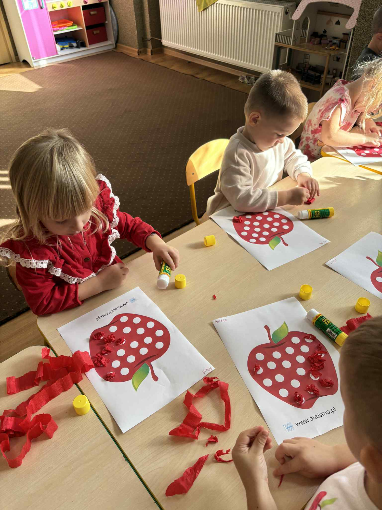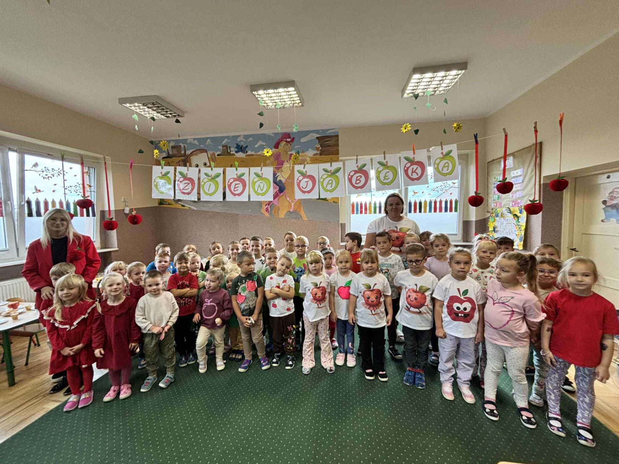 7 października przedszkolaki obchodziły Dzień Jabłka. Dzieci poznawały różne odmiany jabłek, rozmawiały o ich znaczeniu dla zdrowia oraz degustowały świeże owoce i przetwory z jabłek. Nie zabrakło zabaw ruchowych, piosenek i zadań plastycznych związanych z tym smacznym i zdrowym owocem. Dzień upłynął w radosnej, owocowej atmosferze.