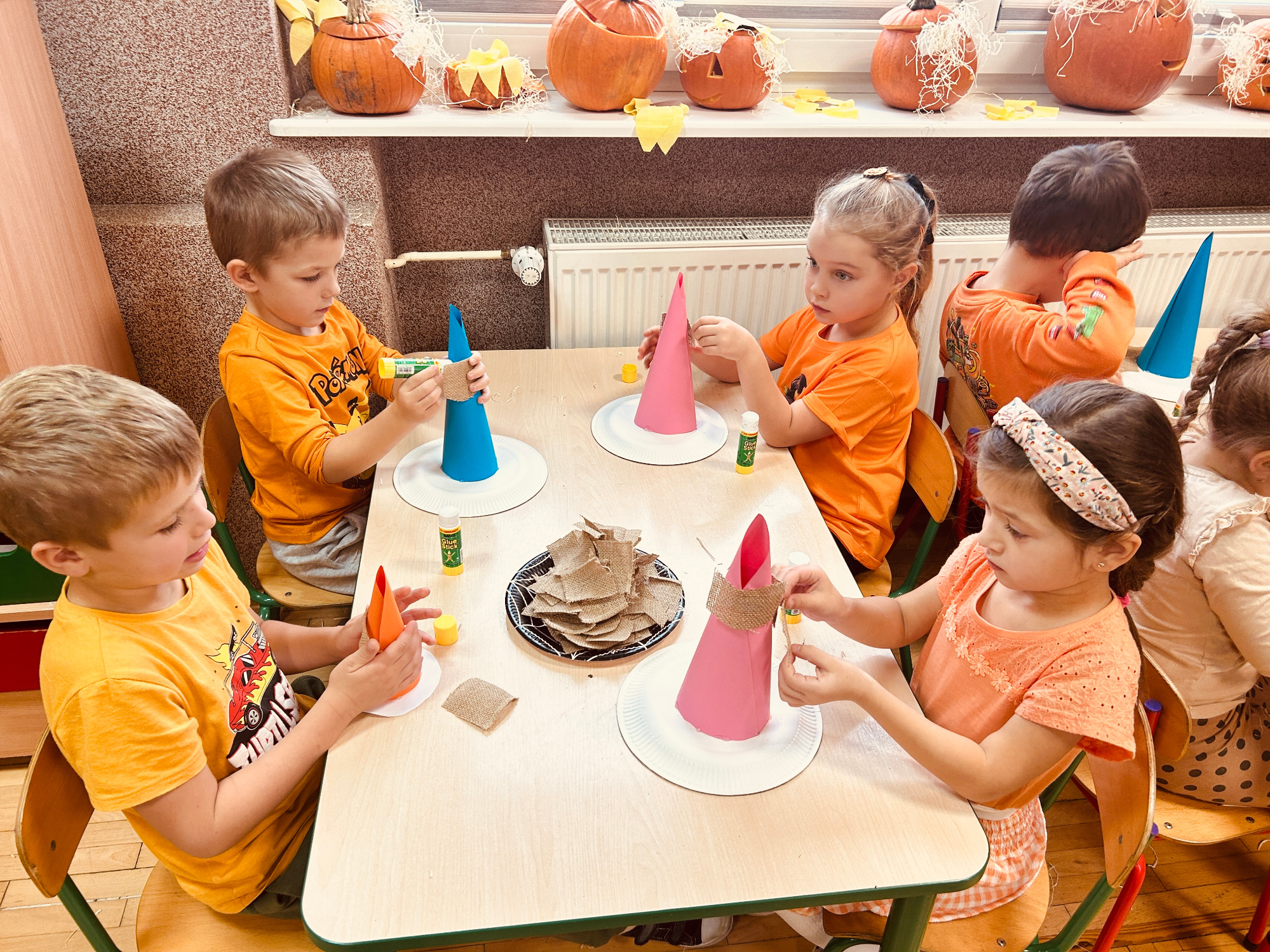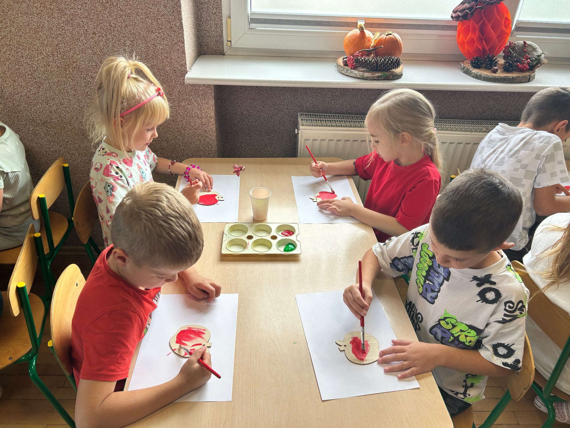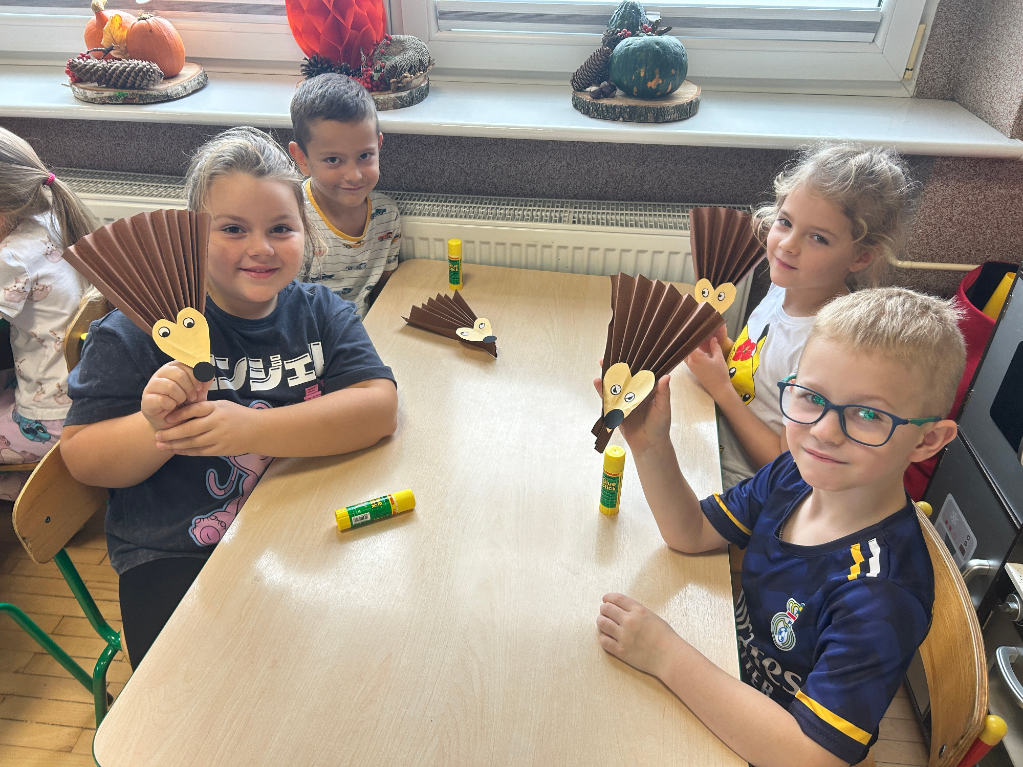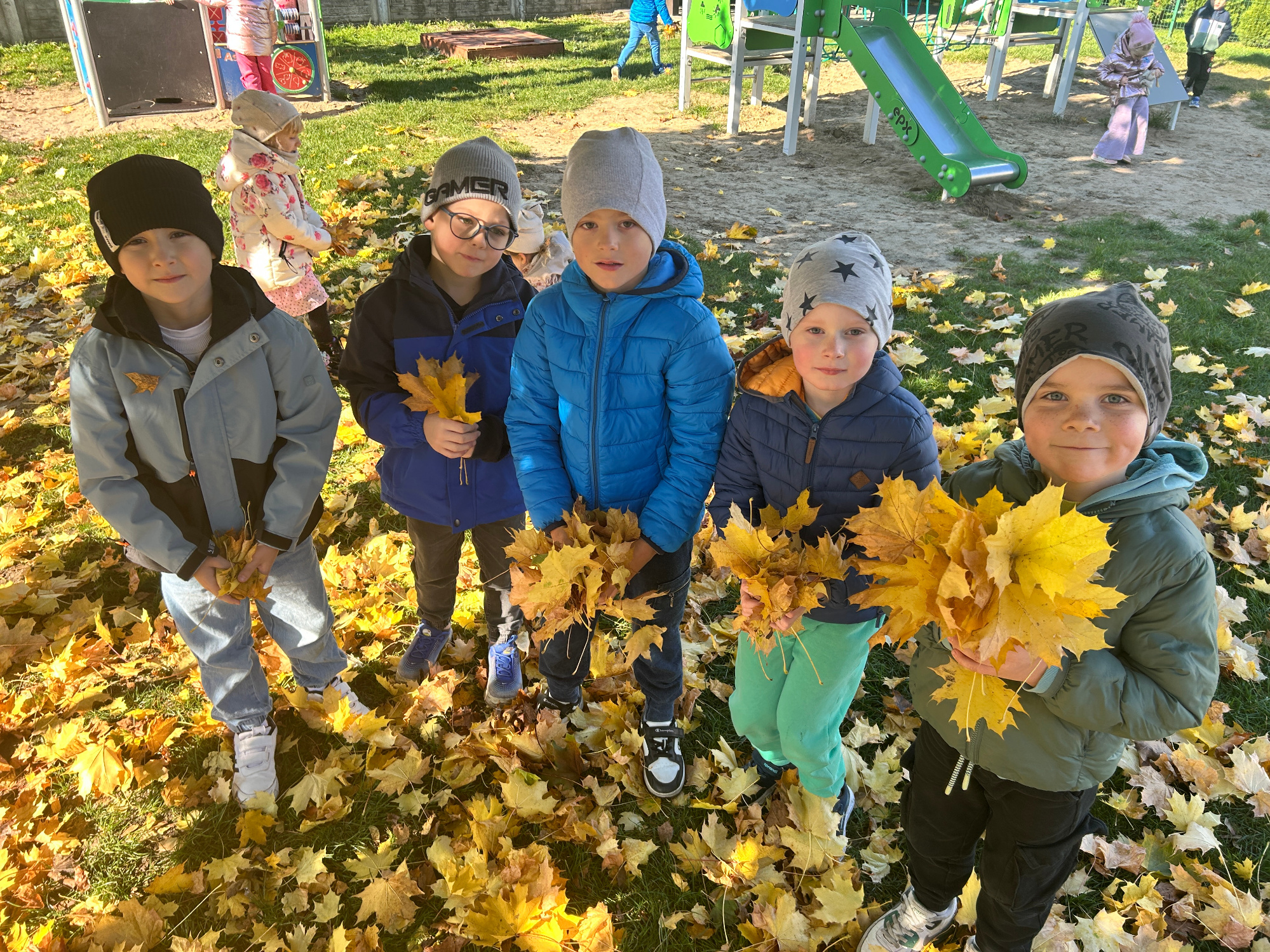 Październik, miesiąc jesieni, rozpoczął się w naszym przedszkolu radośnie i twórczo. Dzieci uczestniczyły w różnorodnych zajęciach plastycznych, muzycznych i ruchowych inspirowanych jesienną przyrodą. Przedszkolaki rozmawiały o zmianach zachodzących w przyrodzie, rozpoznawały owoce, warzywa i inne dary jesieni. Nie zabrakło wspólnych zabaw muzyczno-ruchowych, tańców oraz prac plastycznych z wykorzystaniem liści, kasztanów i żołędzi.