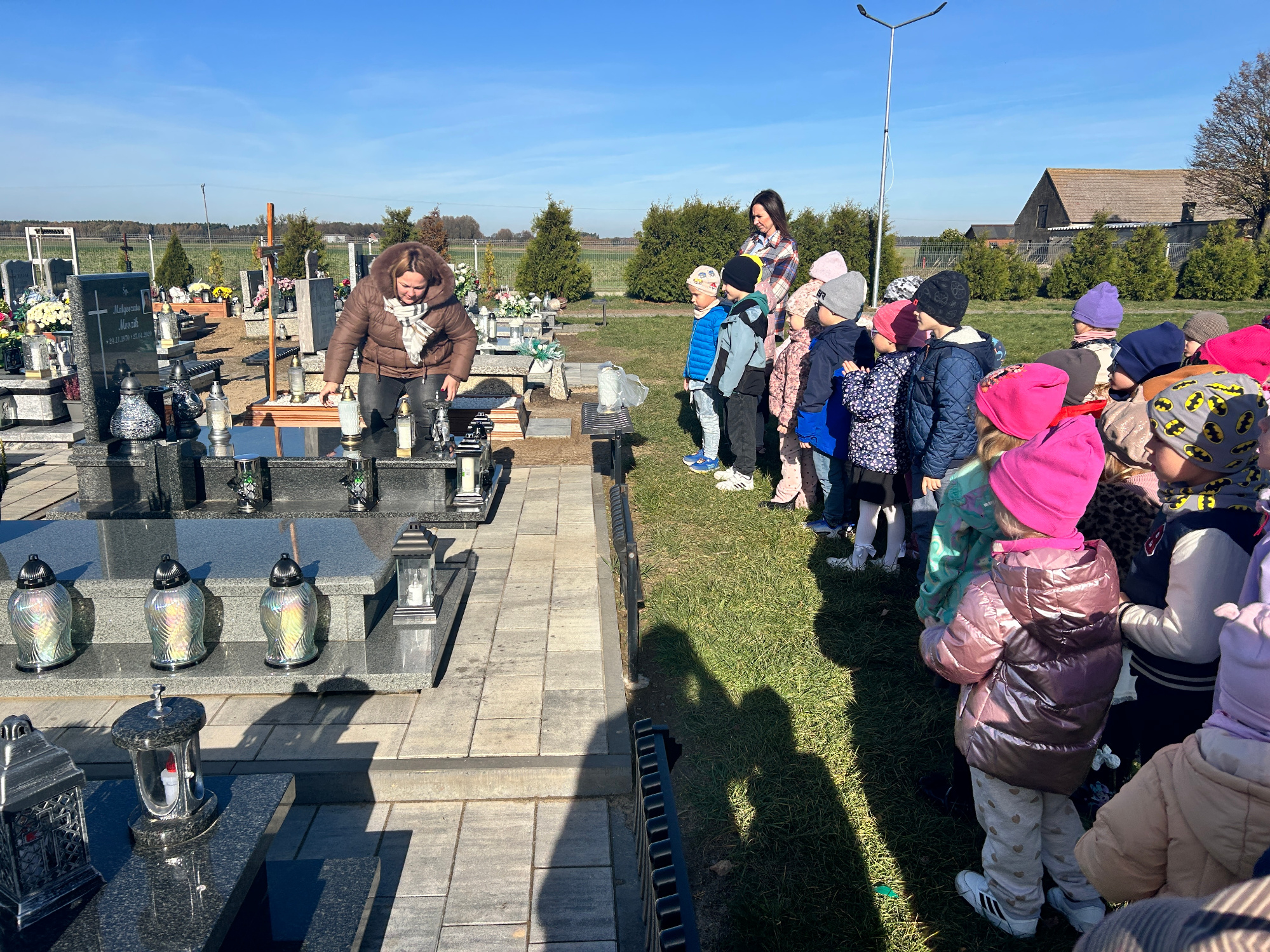 31 października wspólnie z przedszkolakami ku pamięci i zadumie, odwiedziliśmy cmentarze. Dzieci zapaliły znicze, oddając hołd zmarłym i ucząc się szacunku dla tradycji oraz pamięci o tych, którzy odeszli.